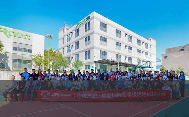 11月16日,中国体育场馆协会大湾区会员交流活动走进杰锐,来自全国各地体育主管部门、体育场馆中心、高校及行业单位的百余位代表齐聚清远英德华侨工业园区,实地考察杰锐全自动化生产体系。